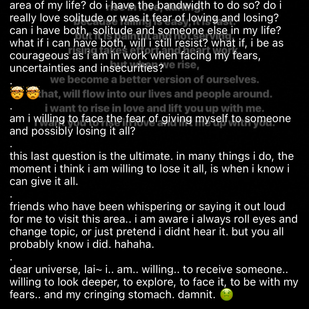 after i met H, i was due to leave for Philippines for a few months. it was also then that i had a very clear and certain feeling im gonna get together with someone. naturally i thought it will be someone i will meet on the trip. obviously i was wrong.
