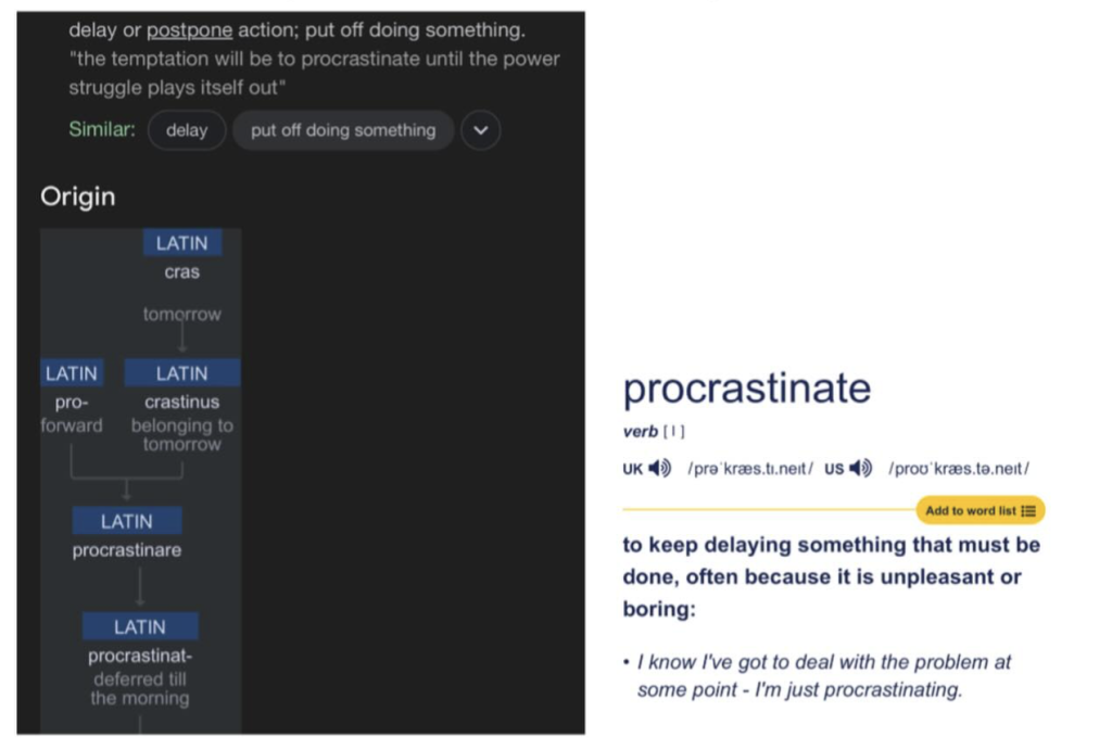 i dont even know who started this shit. procrastination is about delaying or postponing something, and then it evolve to delay because it’s unpleasant.